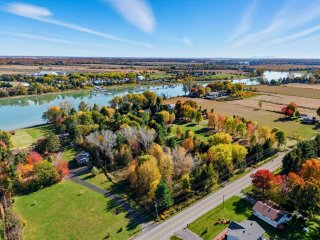 Propriété exceptionnelle au bord de la rivière Richelieu terrain de 122 500 pi² avec arbres matures et nature luxuriante. Vivez l'expérience du bord de l'eau dans cette résidence chaleureuse au concept à aire ouverte, avec salon lumineux, plafond cathédrale et foyer au gaz. L'espace de vie convivial s'étend vers une véranda 3 saisons, idéale pour profiter de la vue panoramique et de l'accès direct et navigable à la rivière Richelieu. Deux garages de très grande superficie complètent cette propriété unique. Située à moins de 10 minutes de l'autoroute 30, elle allie tranquillité, espace et accessibilité, au coeur d'un cadre naturel enchanteur.