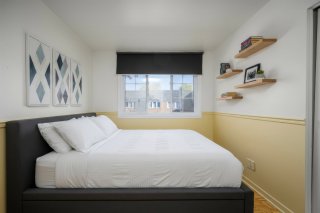 Maison en rangée de coin lumineuse et mise à jour, idéalement située en face d'une école primaire et à proximité des parcs, commerces et transports. Comprend 3 chambres, 1 salle de bain complète et 1 salle d'eau, ainsi qu'un salon chaleureux avec foyer en brique et accès à une terrasse privée clôturée. La cuisine et le coin repas ont été entièrement rénovés en 2020 avec des finitions modernes. Une place de stationnement incluse, avec possibilité d'en louer d'autres. Les frais de copropriété incluent le chauffage -- confort et commodité toute l'année.
