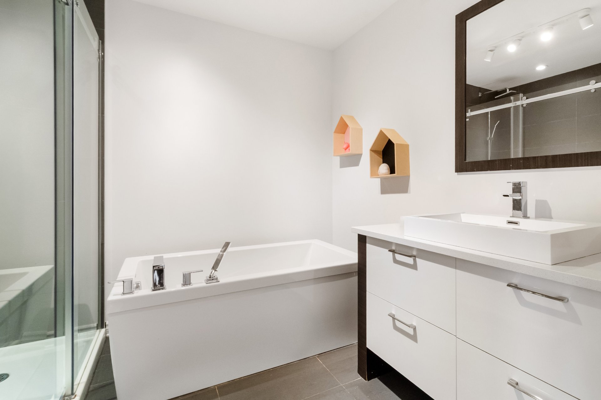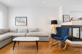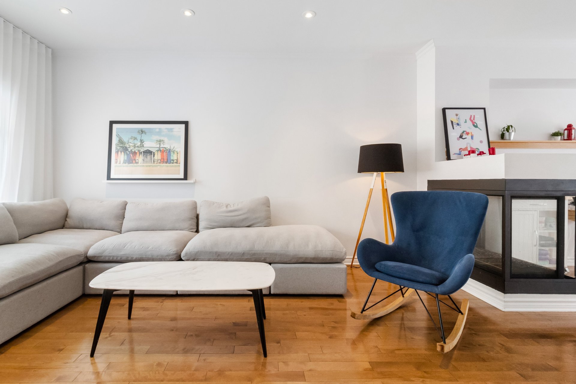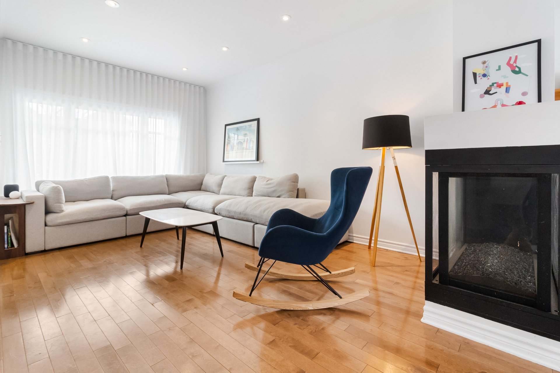 principale est agrémentée d'un foyer au gaz, créant une