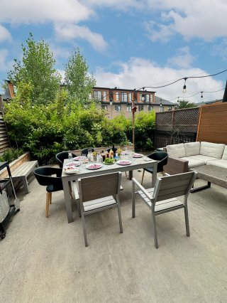 l'extérieur, une grande terrasse et une cour arrière