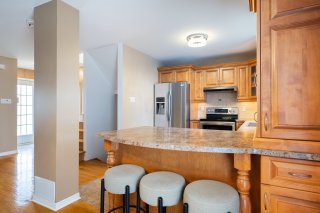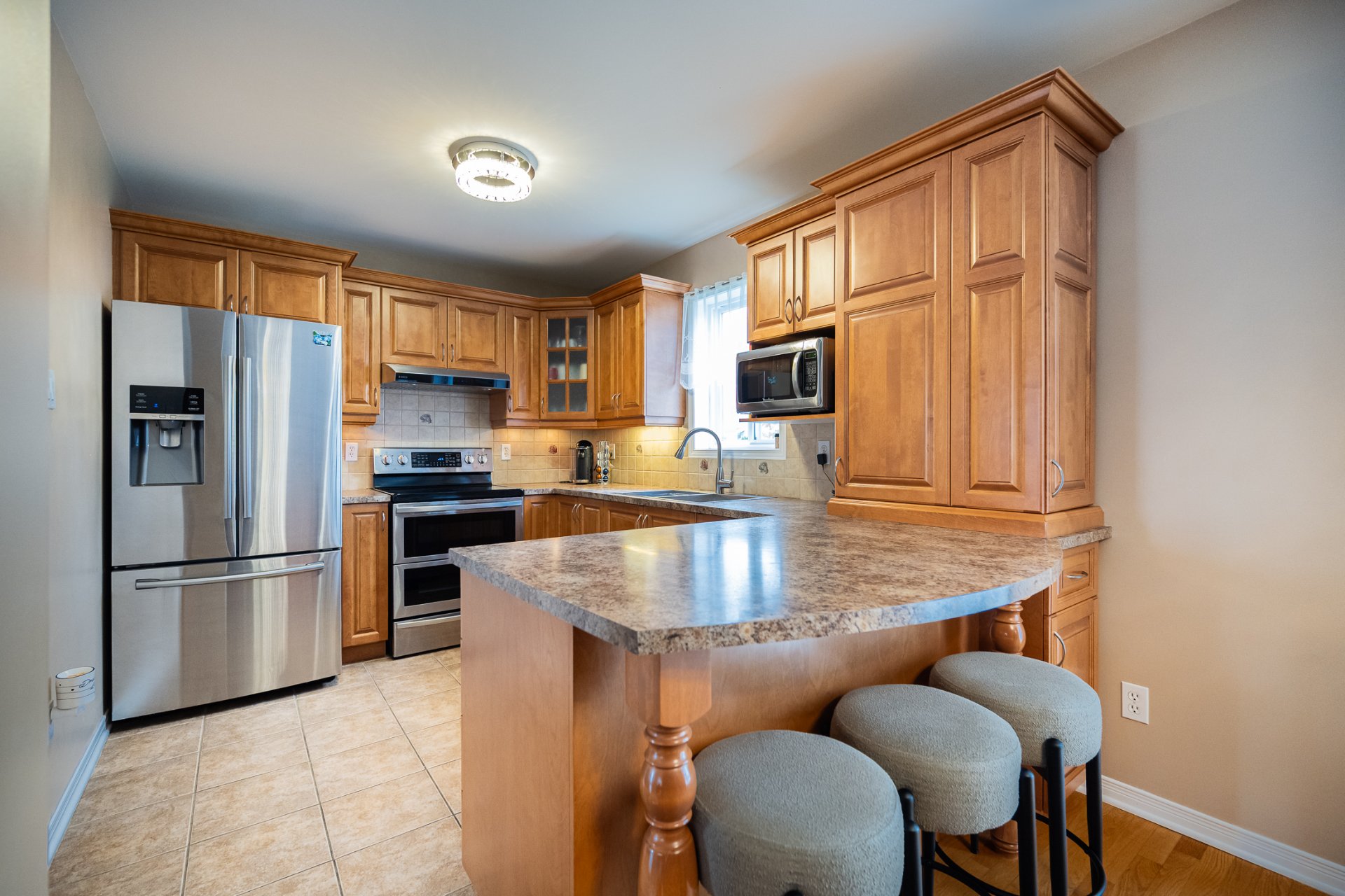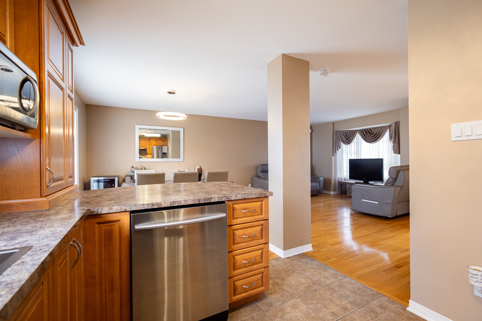 Charmante maison détachée située dans un secteur très recherché de RDP. Construite en 2006 et soigneusement entretenue, elle offre un toit refait en 2024, un acrylique refait autour des fondations, balcons et escaliers, ainsi qu'une porte-patio changée en 2021. Profitez d'un système central avec thermopompe, échangeur d'air et foyer au propane. Rez-de-chaussée à aire ouverte avec planchers de bois franc et cuisine en bois. Trois chambres à l'étage, salle de bain complète, salle d'eau et salle de lavage au sous-sol. Cour arrière avec gazebo et cabanon. Secteur paisible près des écoles, parcs, train, commerces et autoroutes.