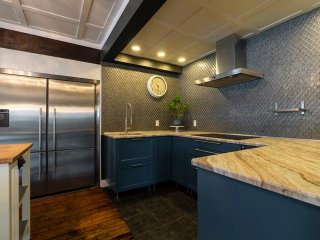 qui réunit la cuisine, la salle à manger et le salon. La