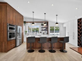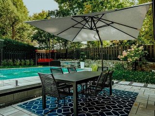 Inclus : Stores, lave-vaisselle Bosch, duo four micro-ondes encastré KitchenAid, surpresseur d'eau, balayeuse centrale et accessoires, pendrie PAX, établi en bois et table de stainless situé dans l'atelier, accessoires de piscine, le support de télévision mural et la remise du jardin.