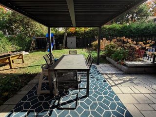 située sous l'abris d'auto (carport), cour arrière complète